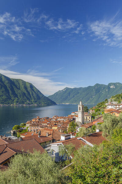 A view of Sala Comacina town and lake Como from "Greenway del Lago di Como" path, Como province, Lombardy, Italy, Europe