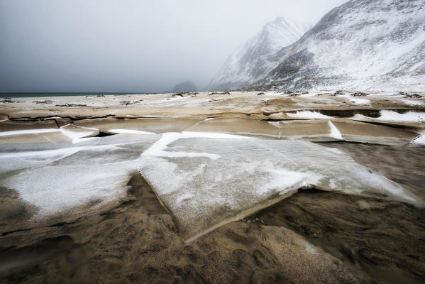 Hamnoy - Lofoten islands, Norway Coastal rocks and mountains.