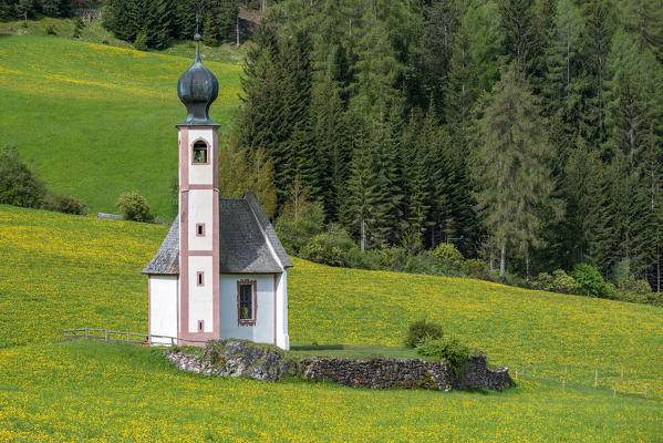 Funes Valley, Dolomites, South Tyrol, Italy. The church San Giovanni in Ranui