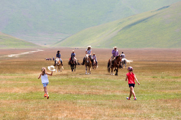 Europe,Italy,Umbria,Perugia district,Castelluccio of Norcia. Horse riding