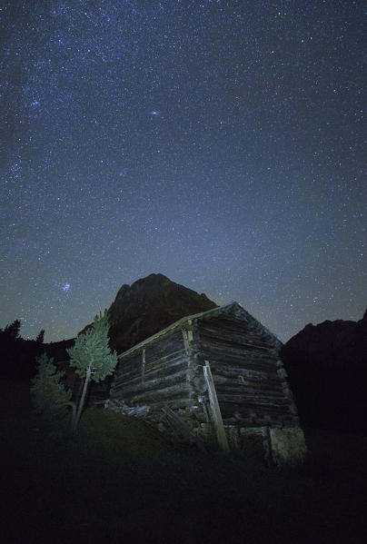Starry night frame the Three Peaks of Lavaredo Sesto Dolomites Trentino Alto Adige Italy Europe