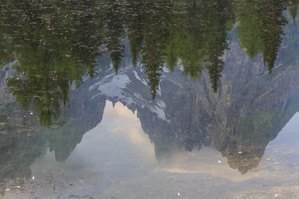 Cadini di Misurina group is  reflected in Lake Antorno. Auronzo of Cadore Veneto Sesto Dolomites Italy Europe