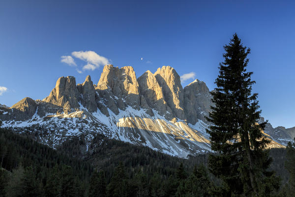 The group of Odle and its peaks at sunrise.  St. Magdalena Funes Valley South Tyrol Dolomites Italy Europe