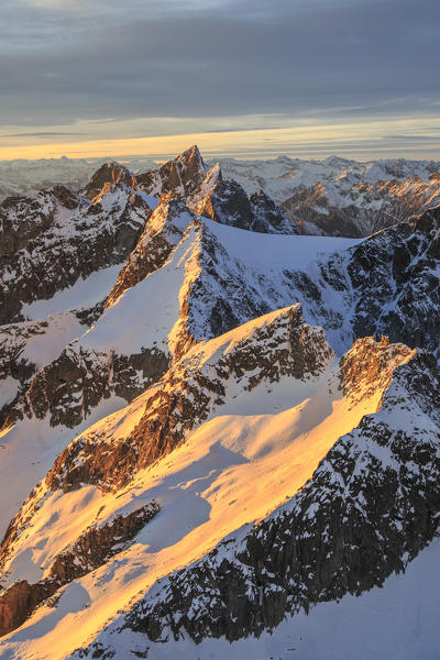 Aerial view of Masino Valley at sunset Valtellina Lombardy Italy Europe