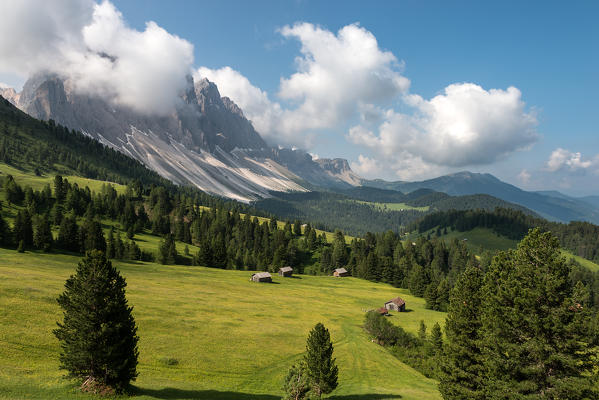 Funes Valley, Dolomites, South Tyrol, Italy. Spring in Santa Maddalena