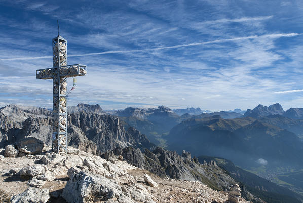 Roda di Vael, Dolomites, Trentino, Italy. At the summit of the Roda di Vael
