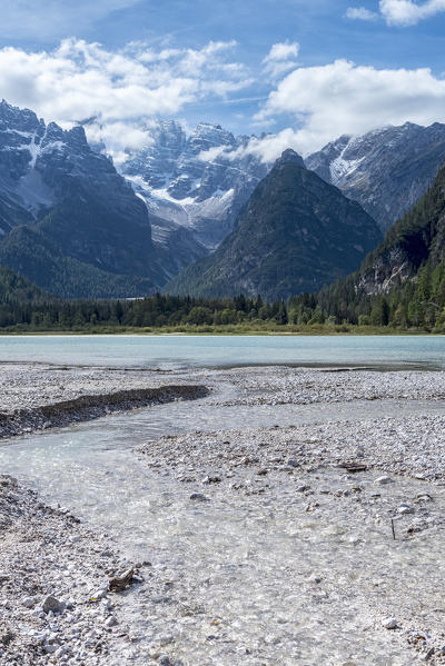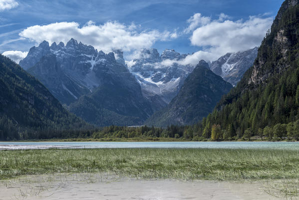 Terento, South Tyrol, Italy. The refuge Lago di Pausa / Tiefrastenhuette and the frozen lake