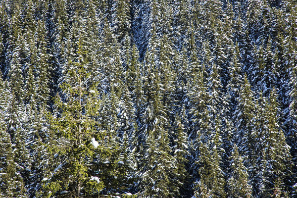 Snowy woods around Julierpass Albula District Canton of Graubünden Switzerland Europe