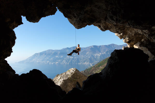 Europe,italy,Campania,Salerno district,Amalfi coast. Climber downhill