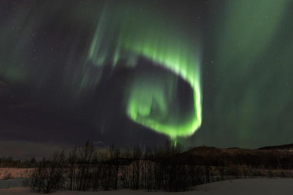 Aurora borealis on the snowy landscape at Tromsø Lyngen Alps Lapland Norway Europe