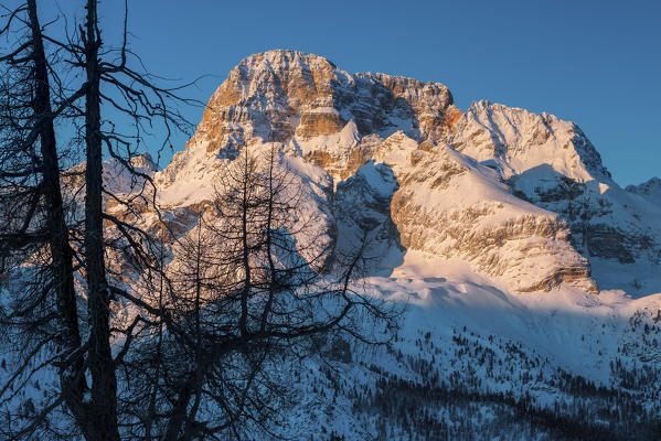 Prato Piazza/Plaetzwiese, Dolomites, South Tyrol, Italy. Sunrise on the Croda Rossa/Hohe Gaisl