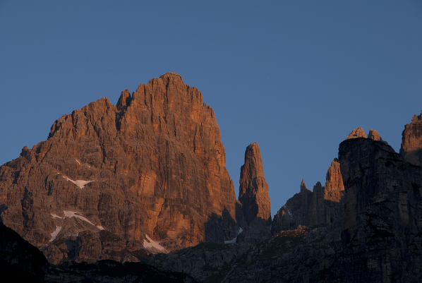 Picco di Vallandro, Dolomites, South Tyrol, Italy. The summit casts its shadow up in the Pustertal Valley