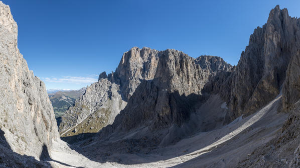 sassolungo/Langkofel, Dolomites, South Tyrol, Italy. View from Plattkofelvalley to Sassolungo/Langkofel
