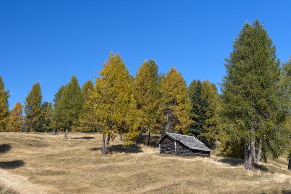 Alpe di Siusi/Seiser Alm, Dolomites, South Tyrol, Italy. Autumn on the Alpe di Siusi/Seiser Alm
