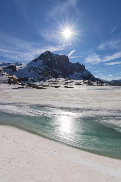Europe, Italy, thaw at vacca Lake, Adamello park, province of Brescia.
