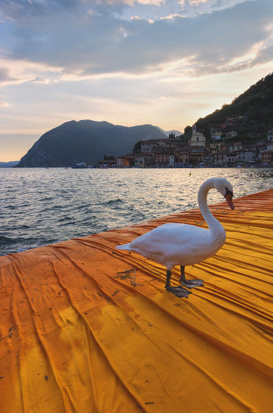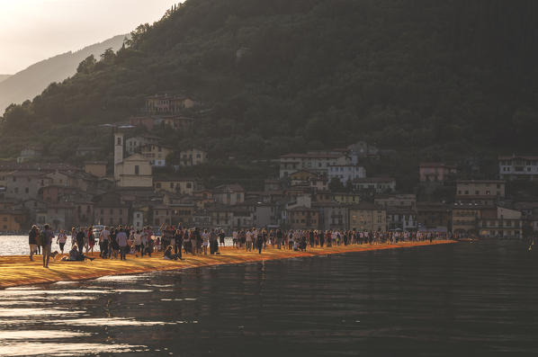 Europe, Italy, The Floating Piers in Iseo lake, province of Brescia.