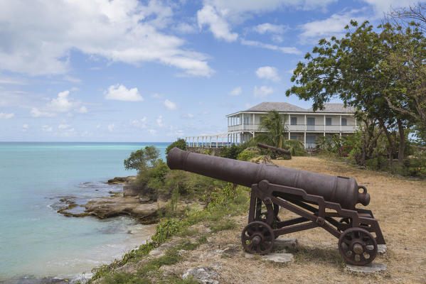 Birds fly on the turquoise waters of the Caribbean Sea Green Island Antigua and Barbuda Leeward Island West Indies