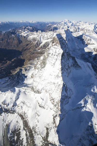 Blue sky frames the snowy peak and ski slopes on a sunny day Bettmeralp district of Raron canton of Valais Switzerland Europe