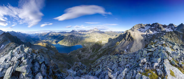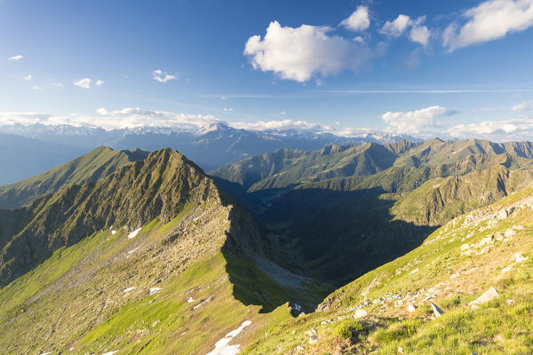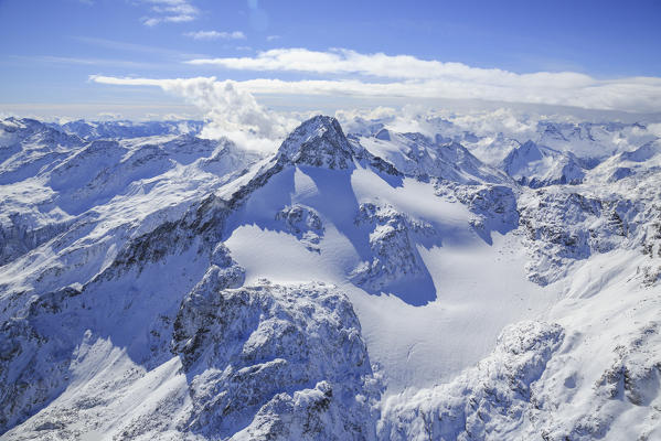 Aerial view of peaks and woods of Val Del Ferro Masino Valley Valtellina Sondrio Province Lombardy Italy Europe