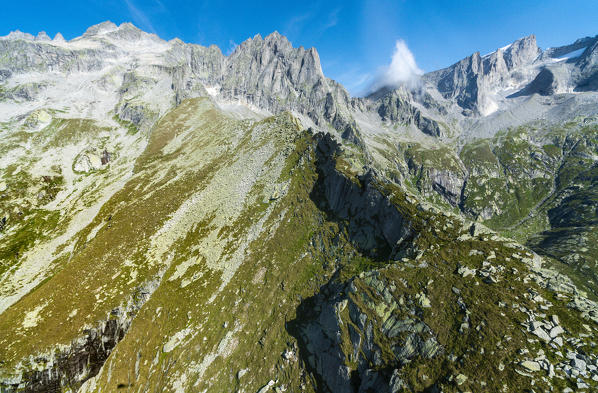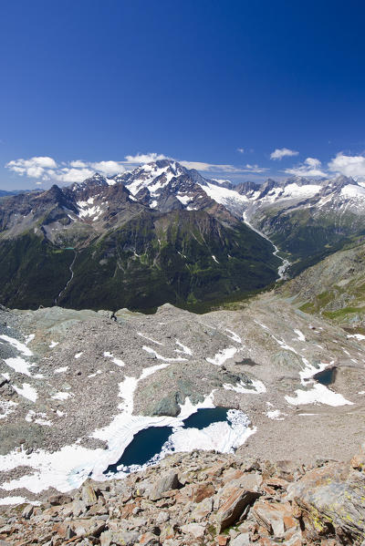 Blue sky on rocks and high peaks Porcellizzo Valley Masino Valley Valtellina Province of Sondrio Lombardy Italy Europe