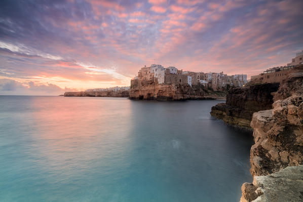 Storm clouds frame the village overlooking the turquoise sea Santa Teresa di Gallura Province of Sassari Sardinia Italy Europe