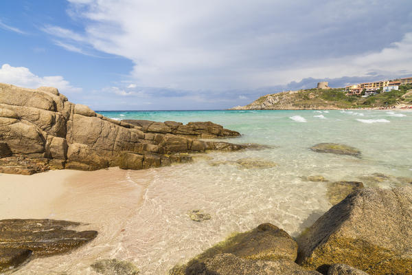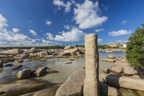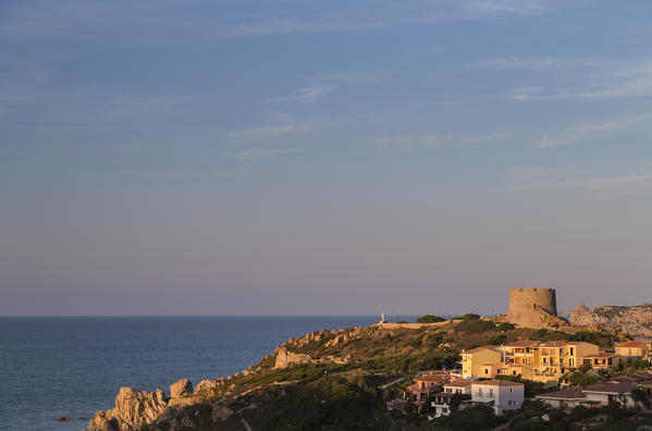 The light of sunset on blue sea framed by cliffs Capo Testa Santa Teresa di Gallura Province of Sassari Sardinia Italy Europe