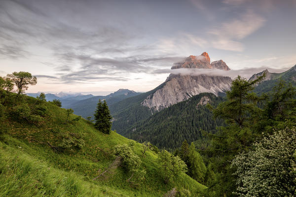 Mount Pelmo at sunset,San Vito di Cadore,Belluno district,Veneto,Italy,Europe