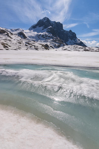 Reflections in Aviolo lake, Adamello park, Brescia province, Lombardy district, Italy, Europe.
