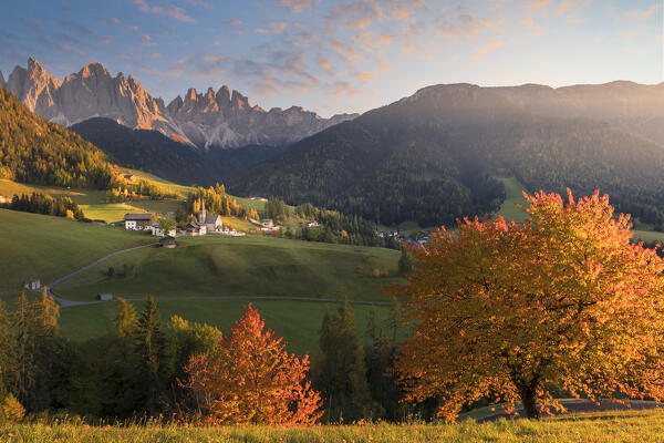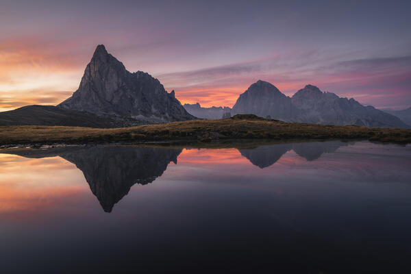 Yellow trees reflecting themselves on San Giuliano Lake, Trentino Alto Adige, Italy