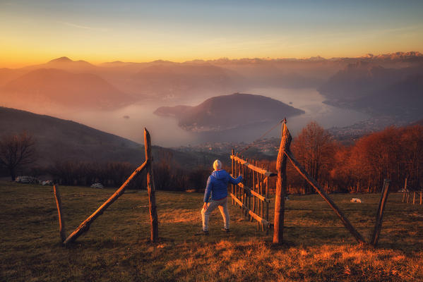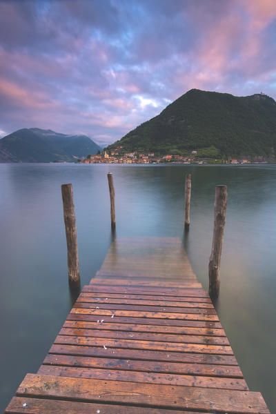 Iseo lake at sunrise, Brescia province, Italy, Lombardy district.