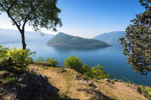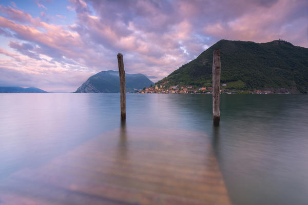 Iseo lake and montisola at sunrise, Brescia province, Italy, Lombardy district, Europe.