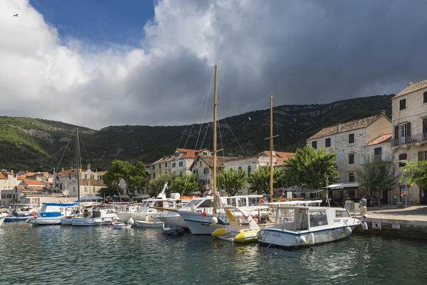 View of Komiza village and its bay (Komiza, Vis, Vis Island, Split-Dalmatia county, Dalmatia region, Croatia, Europe)