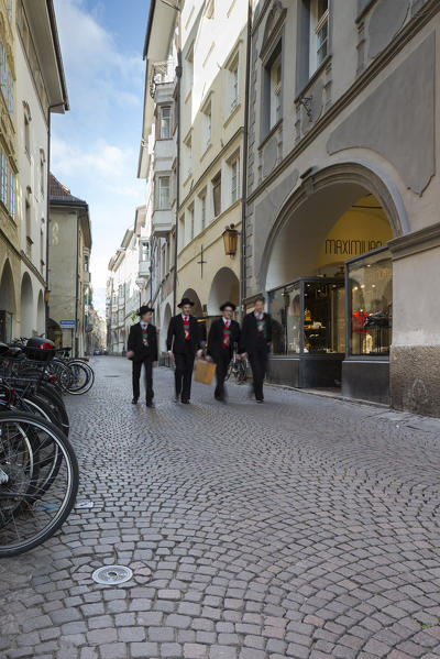 a view of the Talvera Bridge, with the Old Town and the Dolomites in the background, Bolzano province, South Tyrol, Trentino Alto Adige, Italy, Europe,