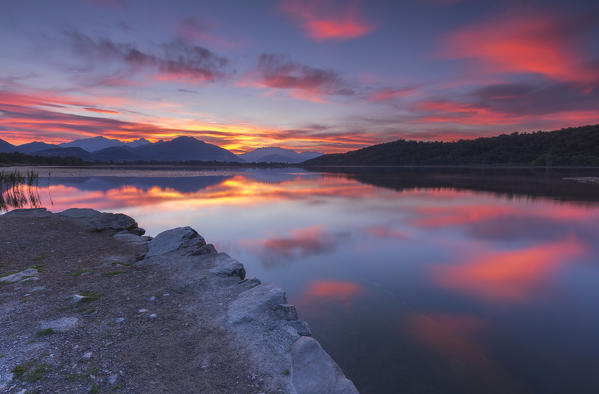 Sunrise on lake Alserio, Alserio, Como province, Brianza, Lombardy, Italy, Europe