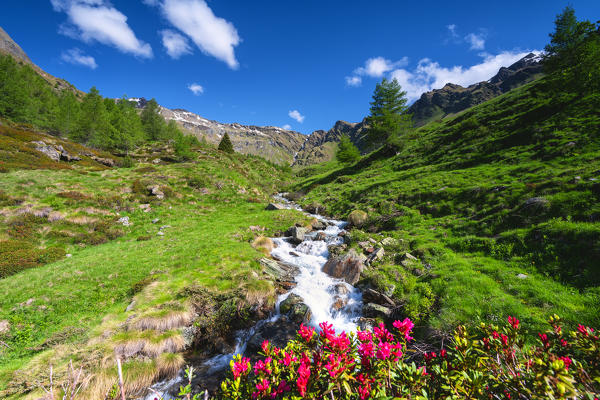 rhododendrons Bloomings in Val Grande, Vezza d'Oglio, Stelvio National park, Brescia province, Lombardy district,Italy, Europe.
