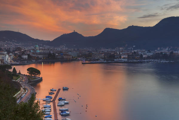 Red sunset on Como, lake Como, Lombardy, Italy, Europe