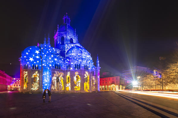 Two lovers in front of Como's cathedral in Christmas time, Como, lake Como, Lombardy, Italy, Europe