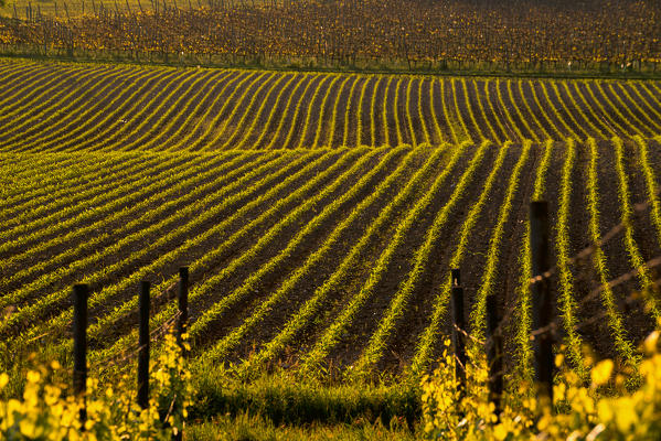 Vineyards in Franciacorta, Brescia province, Europe, Lombardy district, Italy.