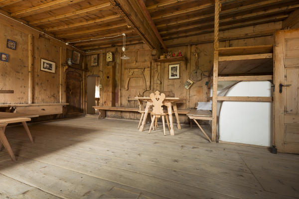 a view of the interior of an old country house in Sarntal, Bolzano province, Trentino, Alto Adige, South Tyrol, Italy