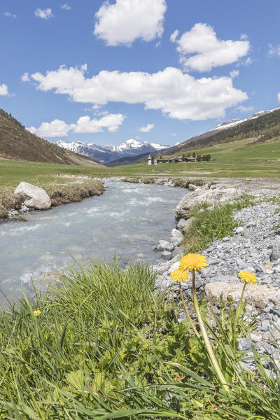 Panoramic of the alpine village of Davos Wiesen in spring, Canton of Graubünden, Prettigovia Davos Region, Switzerland