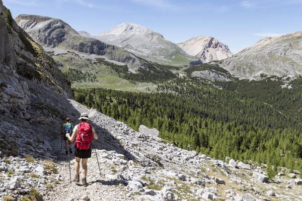 Italy,South Tyrol,Bolzano district,San Vigilio di Marebbe,View of Fanes valley on the return path from the top of Croda del Vallon Bianco