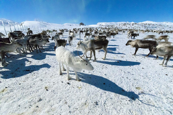 Frozen trees covered with snow under the Aurora Borealis, Abisko, Kiruna Municipality, Norrbotten County, Lapland, Sweden