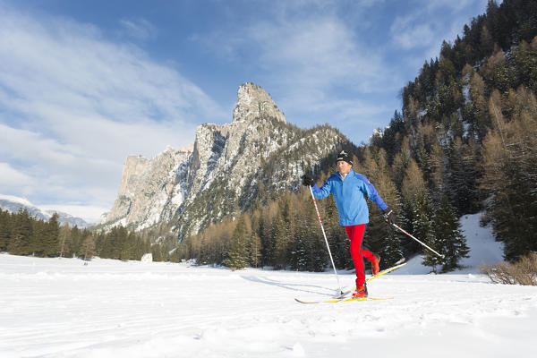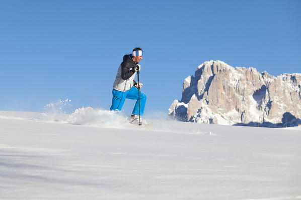 a dog looks at a beautiful sunset on the Marmolada. Bolzano province, South Tyrol, Trentino Alto Adige, Italy