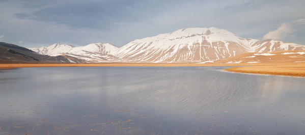 Europe,Italy,Umbria,Perugia district,Castelluccio of Norcia. Thawing snow