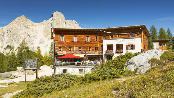 a view of Fanes Lake into the Fanes, Sennes, Prags Natural Park, Bolzano province, South Tyrol, Trentino Alto Adige, Italy