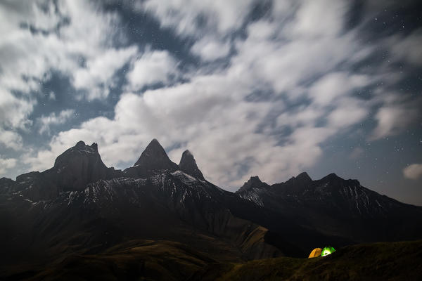 Panoramic shot showing the Milky Way over Lake Moncenisio - Alps, France. Europe