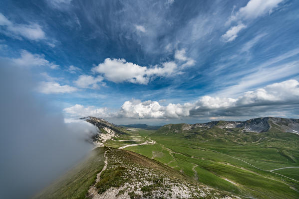Centenario pathway photographed by Mount Aquila, Campo Imperatore, L'Aquila province, Abruzzo, Italy, Europe