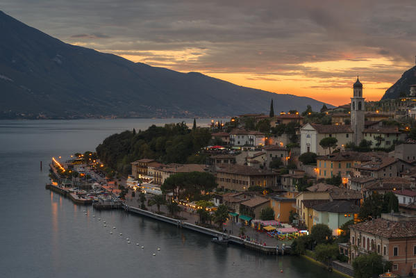 Aerial view from Iseo lake at sunset, Brescia province, Lombardy district, Italy.