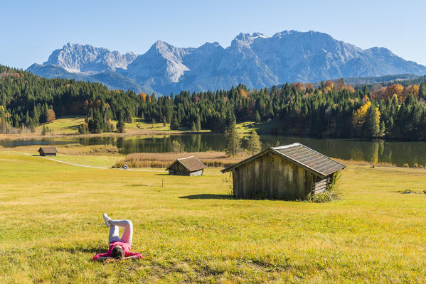 Wamberg, Garmisch Partenkirchen, Bavaria, Germany, Europe. Wamberg village at dusk. Garmisch Partenkirchen and Zugspitze mountain in the background