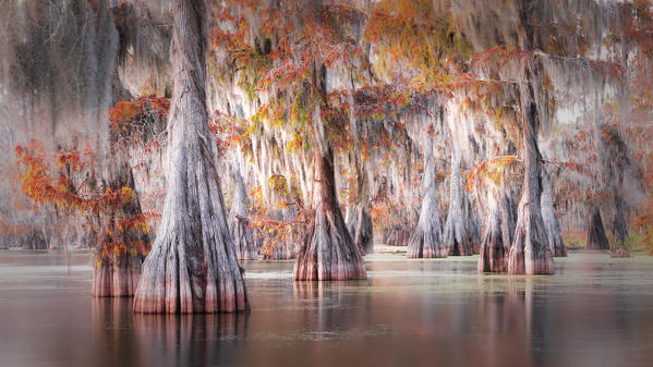 Taxodium distichum, Bald Cypress, Lake Martin, Atchafalaya Basin, Breaux Bridge, Louisiana, United States